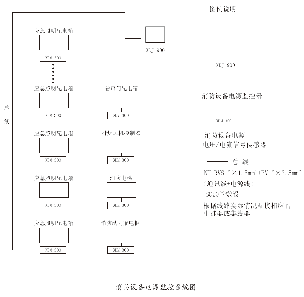XDM-300/AC監(jiān)測模塊與XDJ-900監(jiān)控器連接使用來構(gòu)成消防設(shè)備電源監(jiān)控系統(tǒng)