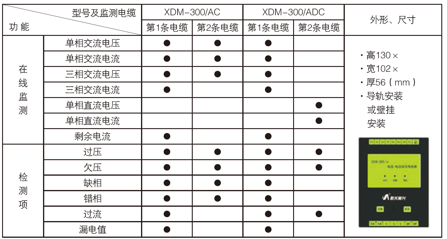 1 監(jiān)測報警功能:當(dāng)被監(jiān)測的設(shè)備電源發(fā)生過壓、欠壓、過流、漏電、缺相等故障時信號傳感器立即發(fā)出聲光報警信號,報警時間:<60s