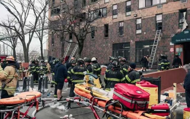 據(jù)紐約市消防部門稱,9日上午11時左右,消防員接到報警電話稱,一座位于紐約布朗克斯區(qū)東181街333號的19層公寓發(fā)生火災,火災始于一套復式公寓的二樓和三樓。