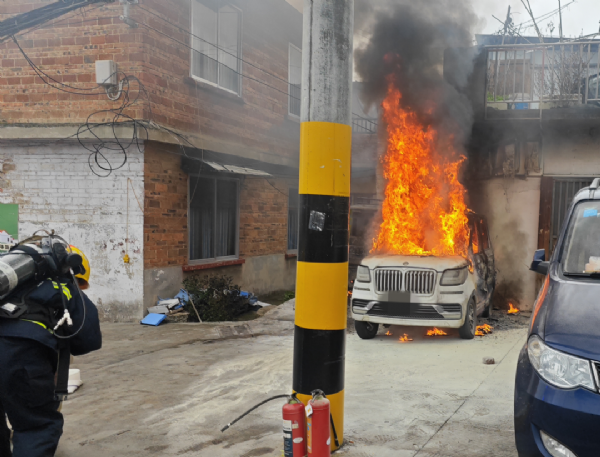 據(jù)了解,事發(fā)時(shí)車主將電動(dòng)三輪自行車開到家門口停放,并從屋內(nèi)拉線為其充電,在充電過(guò)程中,電動(dòng)三輪自行車突然冒煙,車主發(fā)現(xiàn)后嘗試用滅火器進(jìn)行撲救,但火勢(shì)發(fā)展過(guò)快,已將一旁的老年代步車引燃,無(wú)法自行撲滅,車主隨即報(bào)警求助。