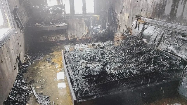 外側(cè)墻體被濃煙熏黑