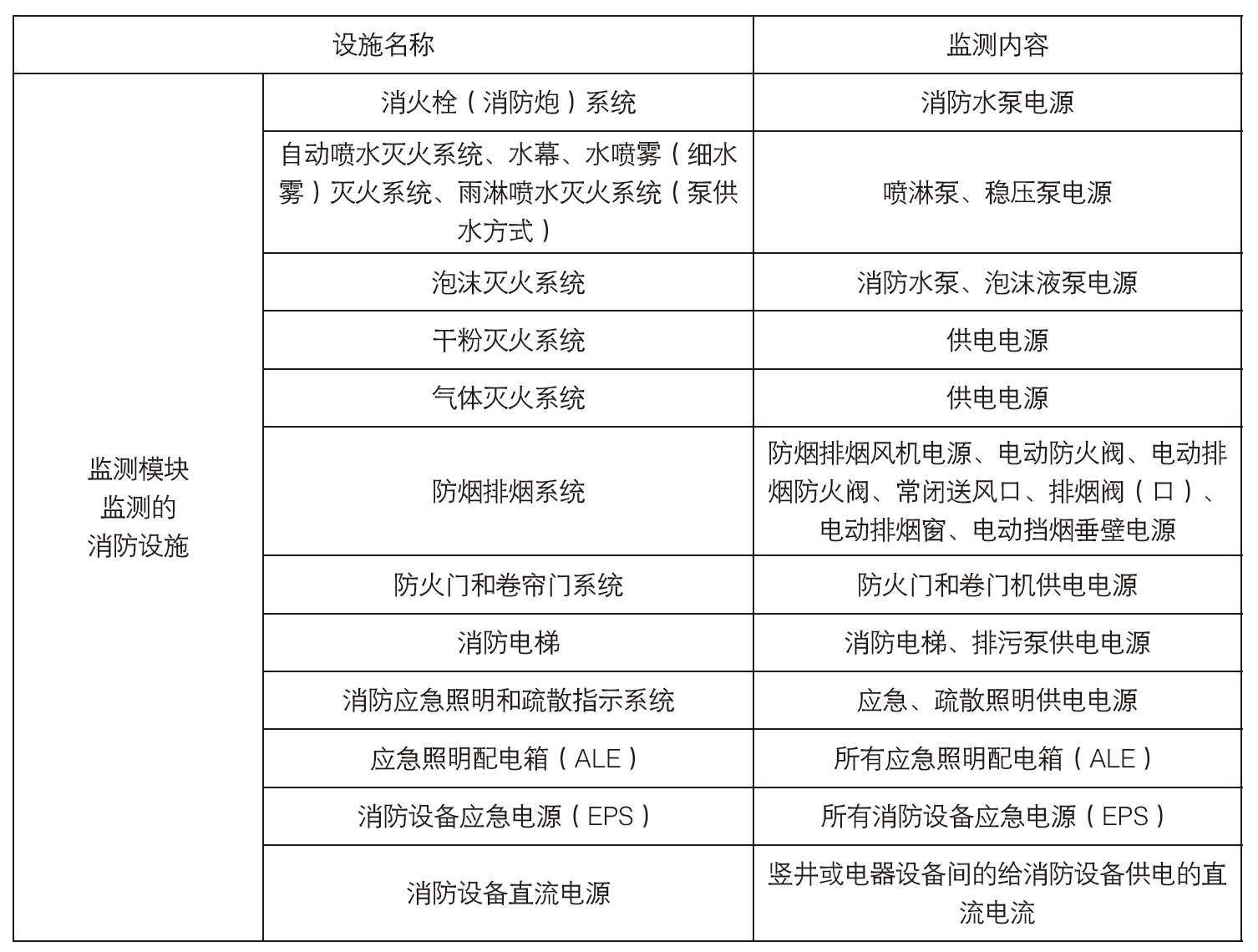 ●通常消防負荷及監(jiān)測模塊具體設(shè)置場所和監(jiān)測內(nèi)容如下圖所示: