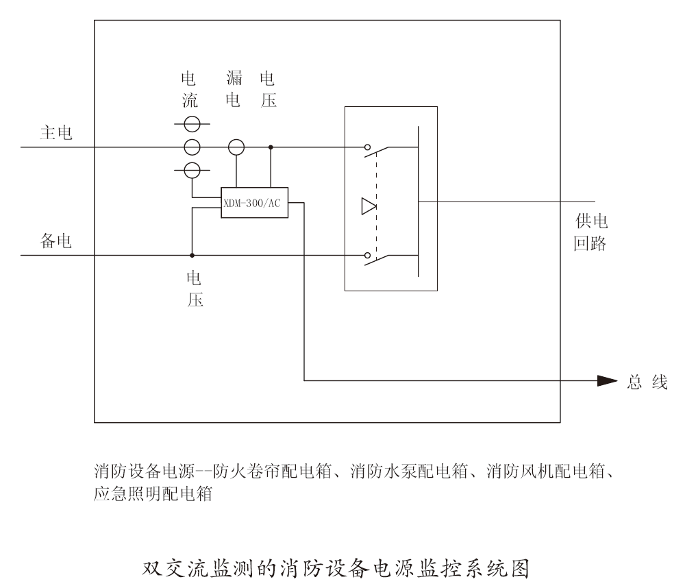 消防設(shè)備電源監(jiān)控系統(tǒng)用于一般工業(yè)與民用建筑中AC220V/380V配電線路中安裝的消防設(shè)備電源的在線監(jiān)控,當(dāng)消防設(shè)備電源發(fā)生過壓、欠壓、過流、漏電、缺相等故障時監(jiān)控系統(tǒng)能立即發(fā)出報警信號,可及早發(fā)現(xiàn)問題從而避免各種事故的發(fā)生。